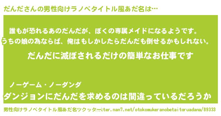 | 胡散臭い通販商品みたいなあだ名 | 『来世でも幸せになれる水素水…その名も「だんだ」』 |
