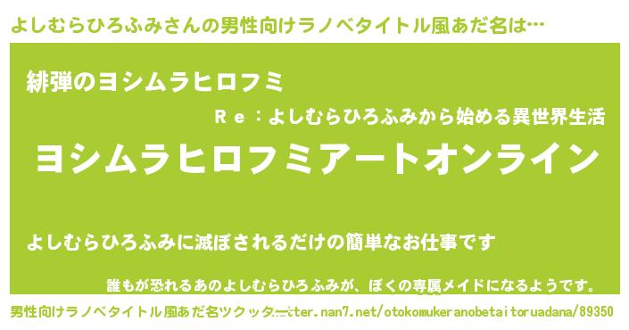 よしむらひろふみさんの男性向けラノベタイトル風あだ名をツクッター!