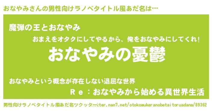 | 胡散臭い通販商品みたいなあだ名 | 『必ず成功するブレスレット…その名も「おなやみ」』 |