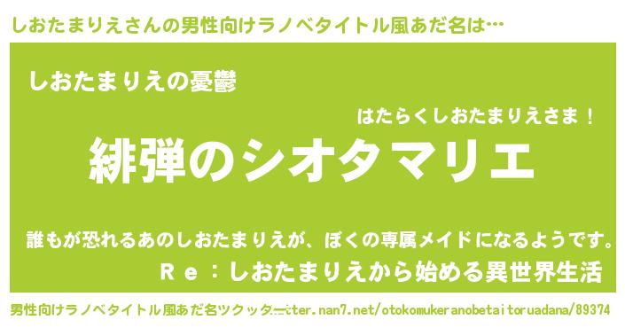| 欧米人風あだ名 | 『しおたまりえ・ステッグマイヤー』 |