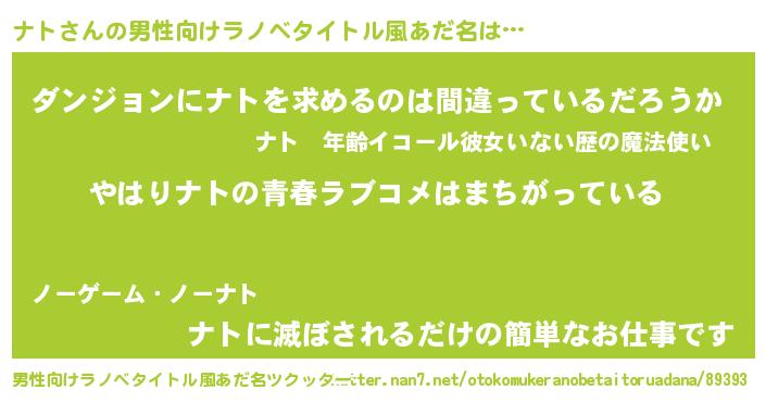 | ヒーロー風カッコイイあだ名 | 『ウルトラナトマン』『暗黒騎士ナト』 |