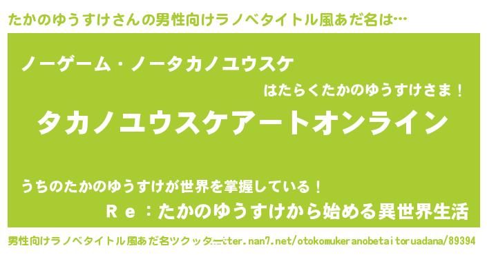 | 女子向けラノベタイトル風あだ名 | 『誰かこのたかのゆうすけを説明してください! ~契約から始まるウェディング~』 |