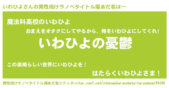 | 女子向けラノベタイトル風あだ名 | 『いわひよ姫と円卓の騎士』 |