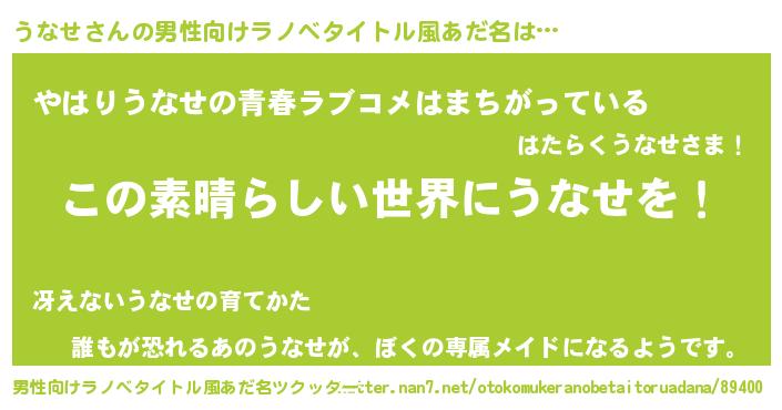 | 意味不明あだ名 | 『住所不定無職うなせ(43歳)』 |