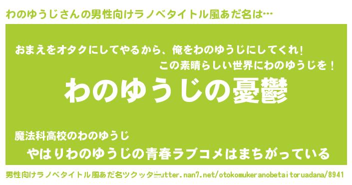 | 胡散臭い通販商品みたいなあだ名 | 『必ず成功するブレスレット…その名も「わのゆうじ」』 |