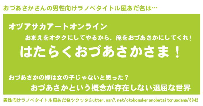 | 胡散臭い通販商品みたいなあだ名 | 『必ず成功する霊験あらたかなお札…その名も「おづあさか」』 |