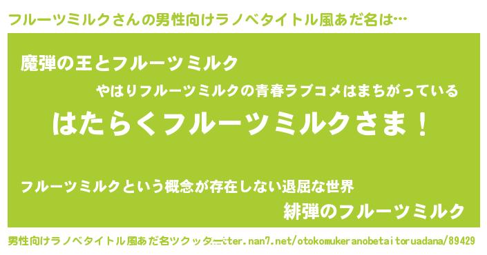 | ヒーロー風カッコイイあだ名 | 『仮面フルダー』『ネオフルーツミルク』 |