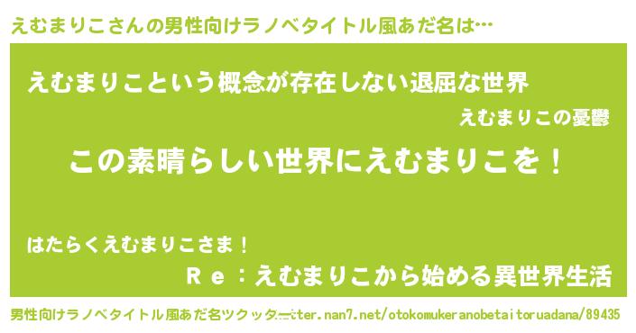 | 意味不明あだ名 | 『住所不定無職えむまりこ(91歳)』 |