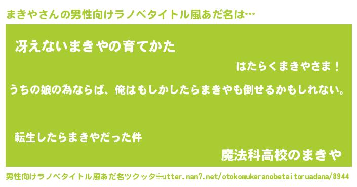 | 女子向けラノベタイトル風あだ名 | 『まきやの婚約者』『まきやアンティーク』 |