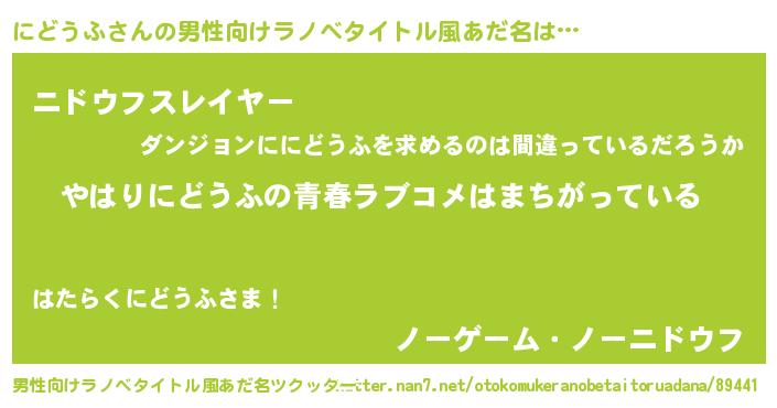 | 女子向けラノベタイトル風あだ名 | 『にどうふの雑貨屋さん』 |