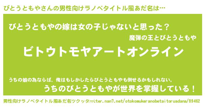 | 女子向けラノベタイトル風あだ名 | 『誰かこのびとうともやを説明してください! ~契約から始まるウェディング~』 |