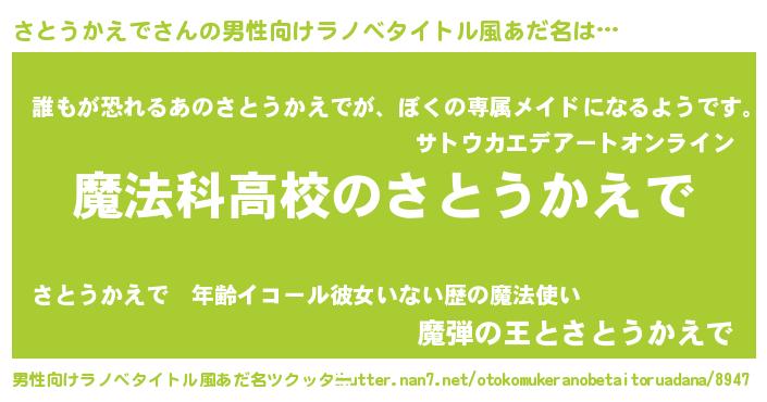 | ヒーロー風カッコイイあだ名 | 『サイバー戦士サトウカエデ』 |