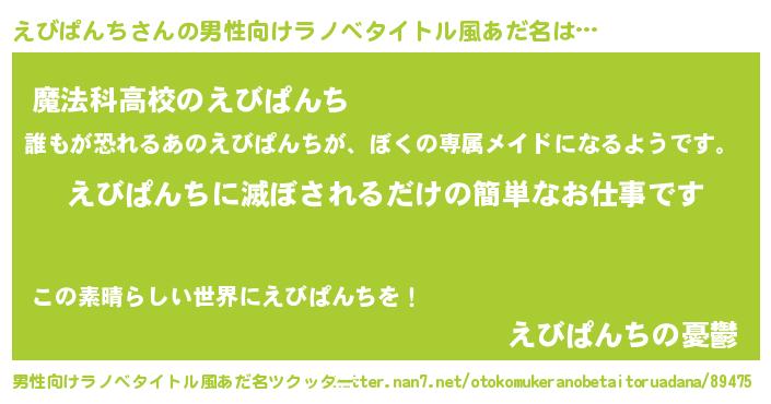 | 意味不明あだ名 | 『自称えびぱんち』『ペロリンえびぱんち』 |