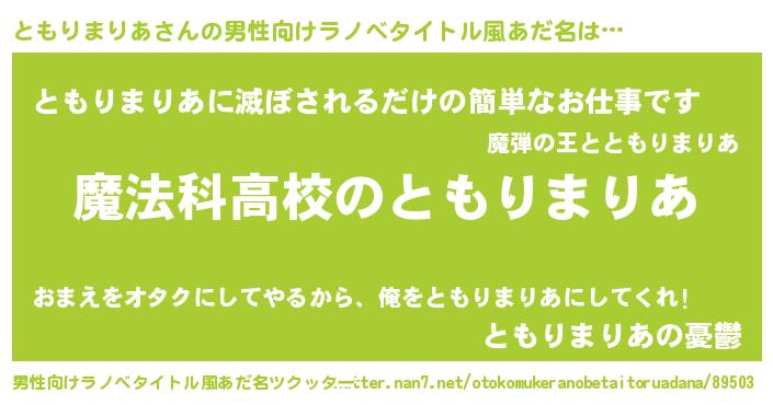 | 女子向けラノベタイトル風あだ名 | 『ともりまりあなんてお断りですっ。』 |