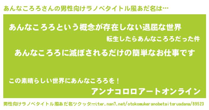 あんなころろさんの男性向けラノベタイトル風あだ名をツクッター!