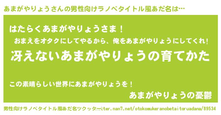 | 胡散臭い通販商品みたいなあだ名 | 『モテモテ間違いなしブレスレット…その名も「あまがやりょう」』 |