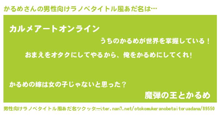 | 女子向けラノベタイトル風あだ名 | 『かるめ恋絵巻』『かるめ姫と円卓の騎士』 |