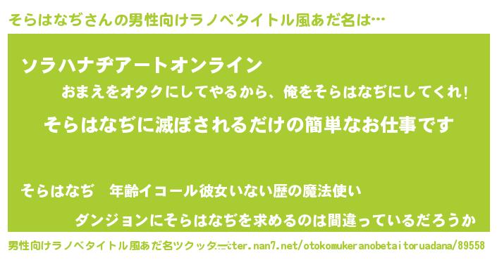 | 意味不明あだ名 | 『ペロリンそらはなぢ』『自称そらはなぢ』 |