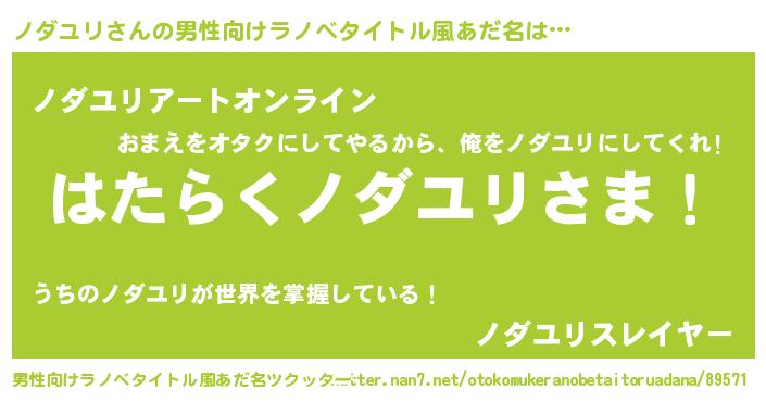 | 胡散臭い通販商品みたいなあだ名 | 『モテモテ間違いなしブレスレット…その名も「ノダユリ」』 |