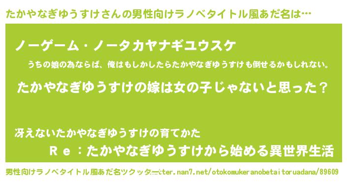 | 伝説のあだ名 | 『解き放たれた遊び人たかやなぎゆうすけ』 |