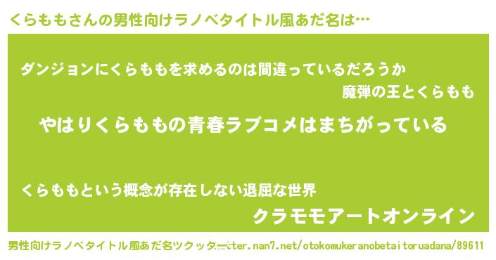| 女子向けラノベタイトル風あだ名 | 『くらももの雑貨屋さん』 |