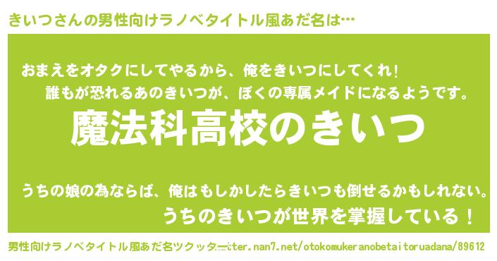 | 女子向けラノベタイトル風あだ名 | 『きいつなんてお断りですっ。』 |