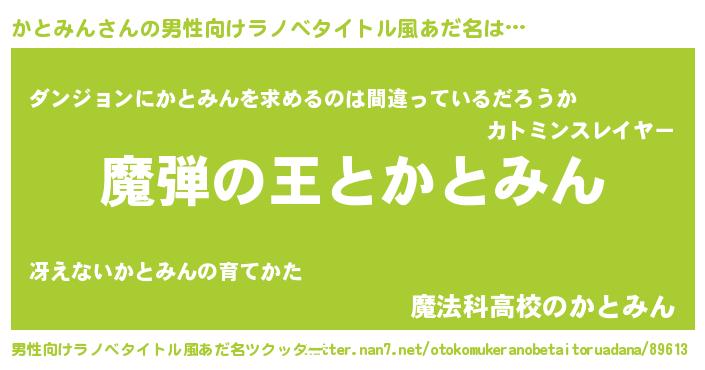 | 意味不明あだ名 | 『住所不定無職かとみん(41歳)』 |