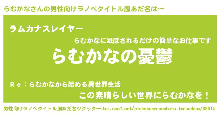 | 胡散臭い通販商品みたいなあだ名 | 『必ず成功する霊験あらたかなお札…その名も「らむかな」』 |