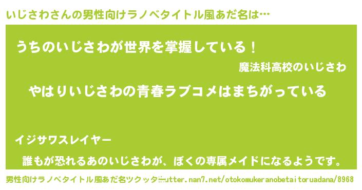 | 女子向けラノベタイトル風あだ名 | 『いじさわ伯爵の花嫁』 |