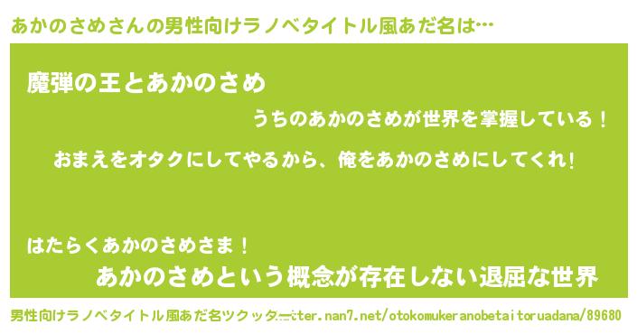| 女子向けラノベタイトル風あだ名 | 『あかのさめ恋絵巻』 |