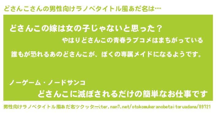 | 胡散臭い通販商品みたいなあだ名 | 『来世でも幸せになれる健康食品…その名も「どさんこ」』 |