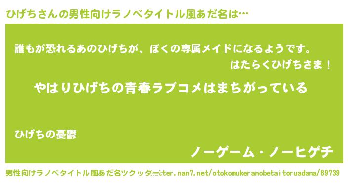 | 女子向けラノベタイトル風あだ名 | 『ひげちの雑貨屋さん』 |