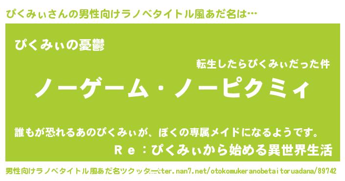 | ヘコむあだ名 | 『ぴくもー』『ぴくみぃ(笑)』 |