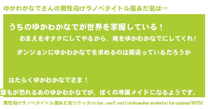 | 女子向けラノベタイトル風あだ名 | 『ゆかわかなでは平凡を望む』 |