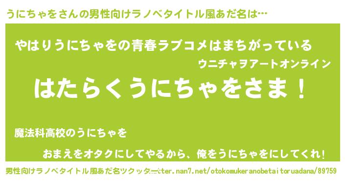| 胡散臭い通販商品みたいなあだ名 | 『幸せが訪れる高級そうな絵画…その名も「うにちゃを」』 |