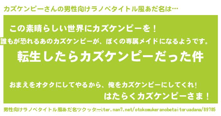 | 胡散臭い通販商品みたいなあだ名 | 『世界中を虜にした世界で10本だけ現存している希少なブランデー…その名も「カズケンピー」』 |