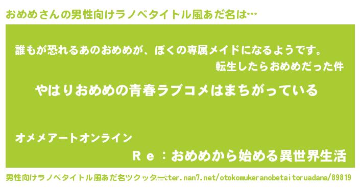 | 女子向けラノベタイトル風あだ名 | 『おめめの雑貨屋さん』『闇のおめめ』 |