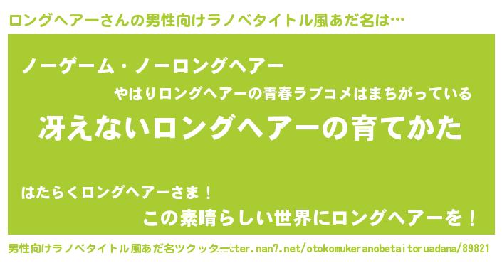 | 女子向けラノベタイトル風あだ名 | 『男装ロングヘアーの憂鬱な任務』 |