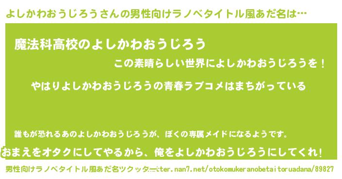 | 女子向けラノベタイトル風あだ名 | 『よしかわおうじろうの雑貨屋さん』 |