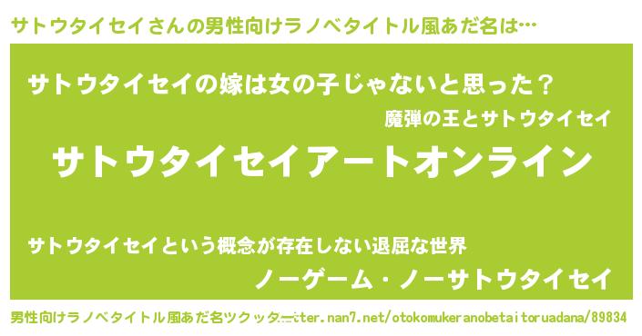 | 胡散臭い通販商品みたいなあだ名 | 『モテモテ間違いなしブレスレット…その名も「サトウタイセイ」』 |