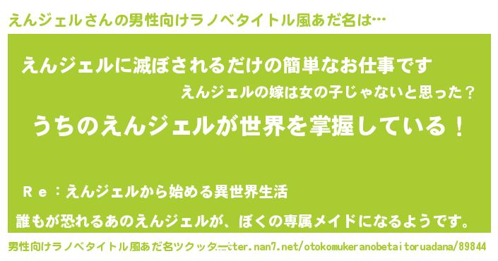 | 女子向けラノベタイトル風あだ名 | 『男装えんジェルの憂鬱な任務』 |