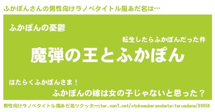 | ヘコむあだ名 | 『ふかもー』『ふかっちょ』 |