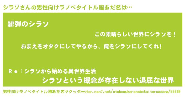 | 女子向けラノベタイトル風あだ名 | 『シラソ夫妻のなれそめ』 |