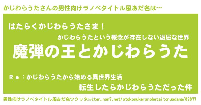 | 女子向けラノベタイトル風あだ名 | 『かじわらうたが死なない童話 林檎のかじわらうたの診療簿』 |