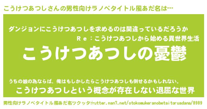 | 胡散臭い通販商品みたいなあだ名 | 『モテモテ間違いなしブレスレット…その名も「こうけつあつし」』 |