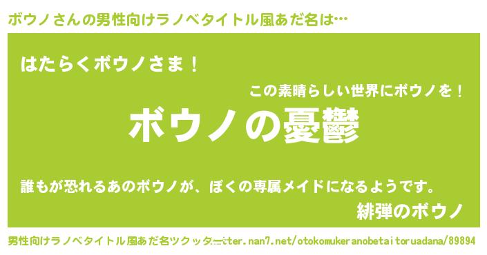 | 胡散臭い通販商品みたいなあだ名 | 『必ず成功するブレスレット…その名も「ボウノ」』 |