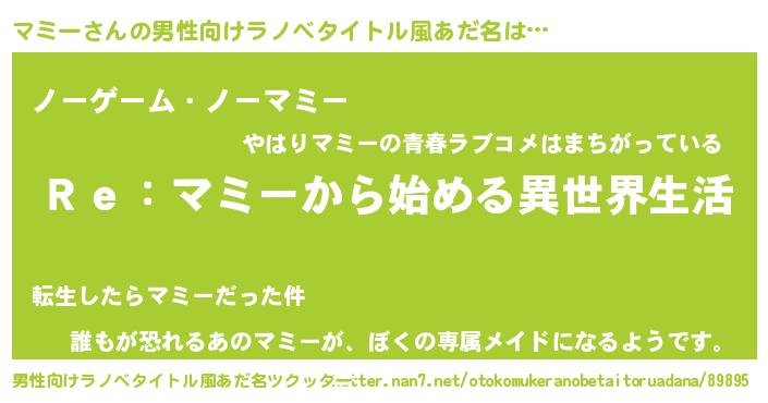 | 女子向けラノベタイトル風あだ名 | 『闇のマミー』『マミー恋絵巻』 |