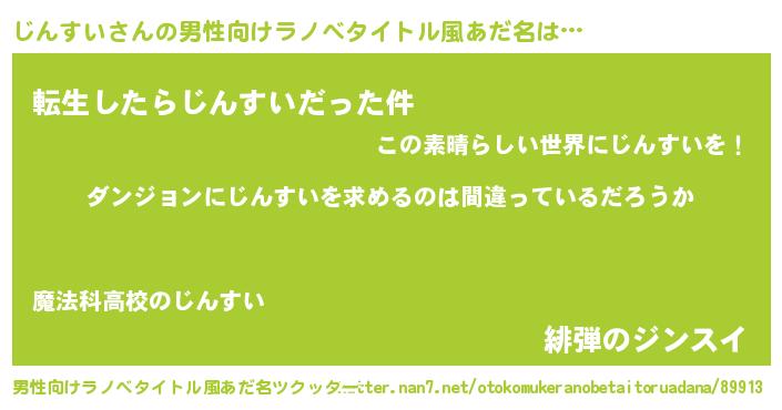 | 意味不明あだ名 | 『とにかく怪しいじんすい』 |