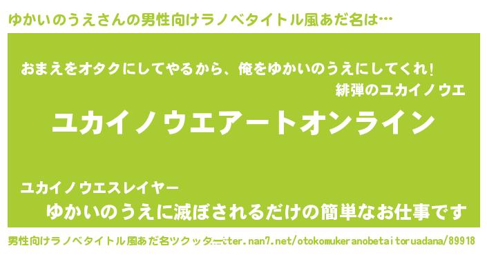 | 胡散臭い通販商品みたいなあだ名 | 『億万長者になれる霊験あらたかなお札…その名も「ゆかいのうえ」』 |