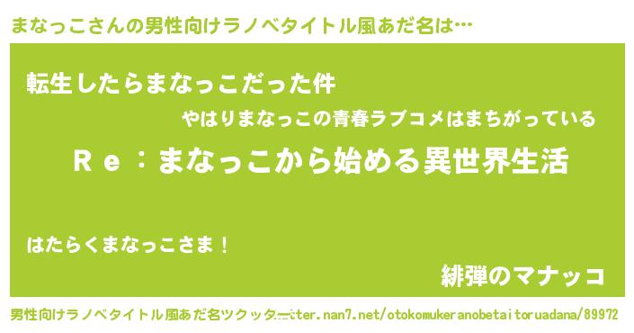 | ヘコむあだ名 | 『なまこ酢』『まなにー』 |